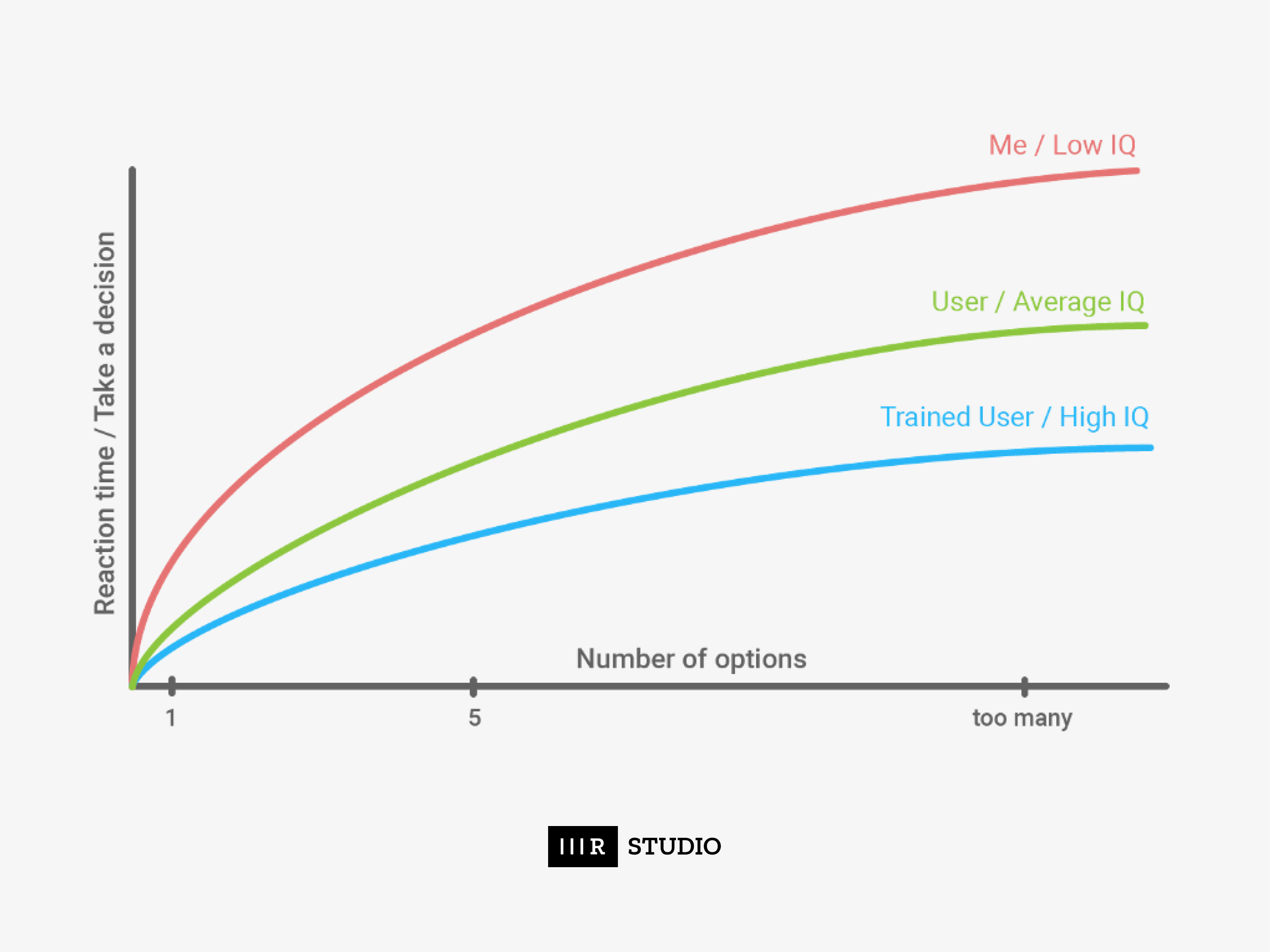•  Hick’s Law: increasing the number of choices will increase the decision time. Which describes the time it takes for a person to make a decision as a result of the possible choices Infront of the user.
